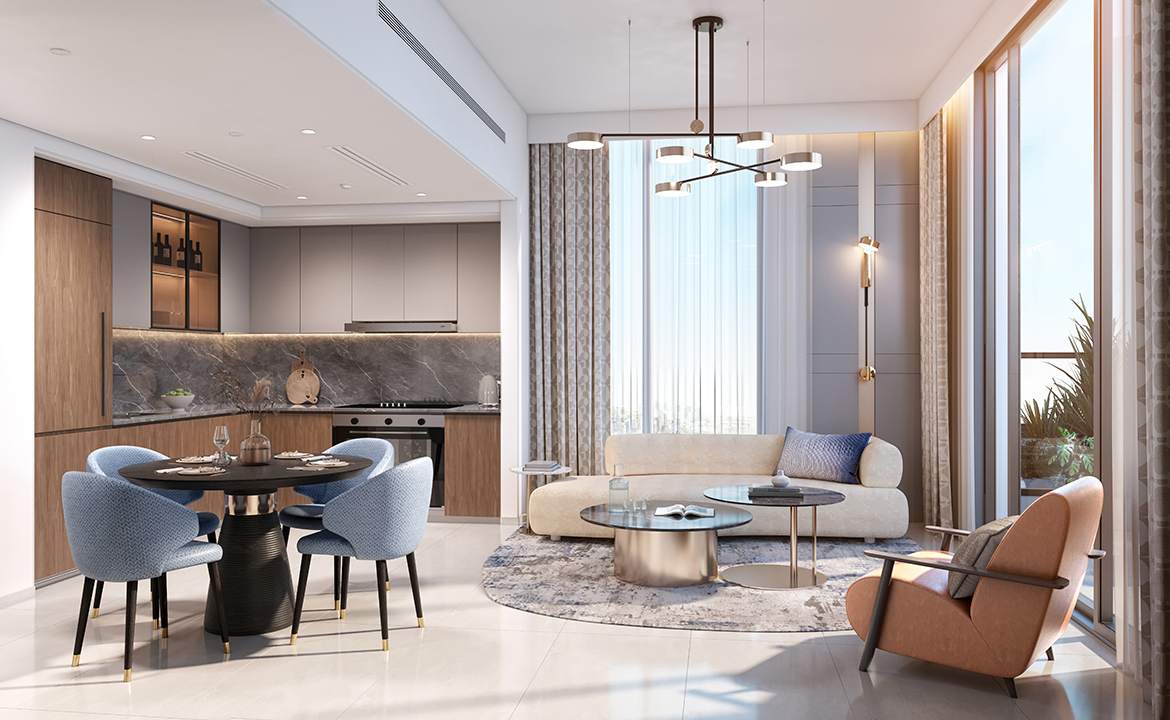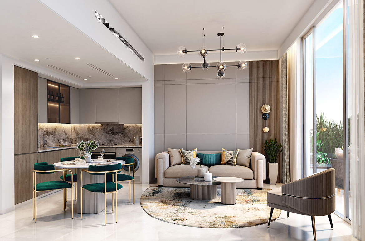 Each element of your home at Azizi Milan is designed for living your best life. The open-plan layout of the 1 bedroom apartments effortlessly connects the living and dining spaces, creating a sense of flow and togetherness.