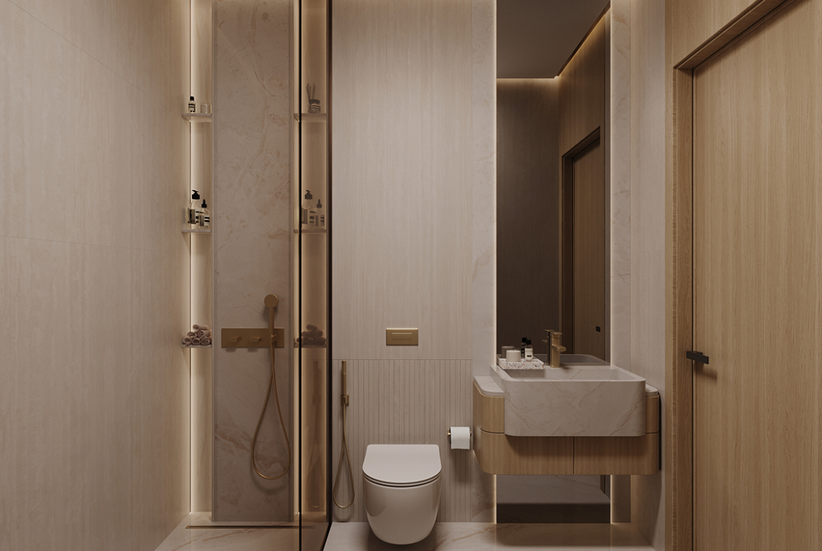 •           Elements like wood veneer and fluted travertine reflect a pursuit of perfection, designed to restore and renew.