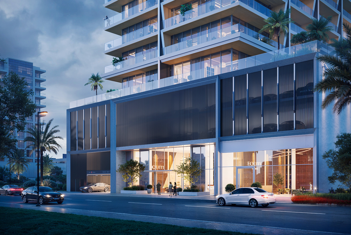 Binghatti Ivory is a testament to modern elegance, with architectural elements echoing journeys and discoveries that create spaces of harmonious revelation and refined beauty. Its façade seamlessly blends enduring materials into a contemporary form.