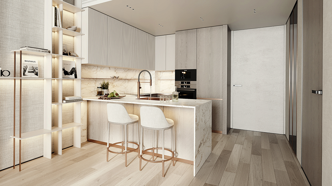 - Grand Arrival: A thoughtfully designed double-height grand lobby with natural finishes and refined details to welcome you home.