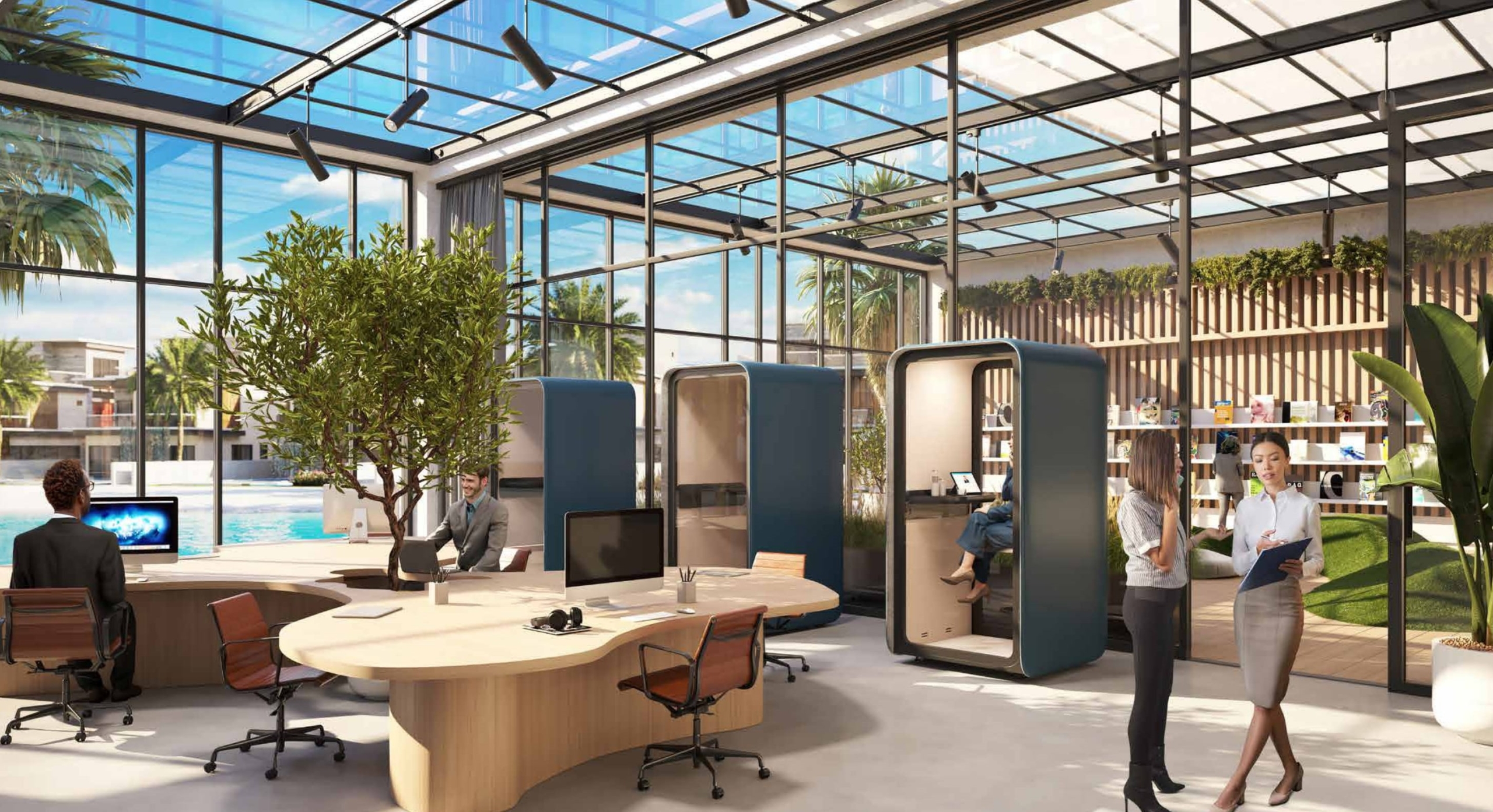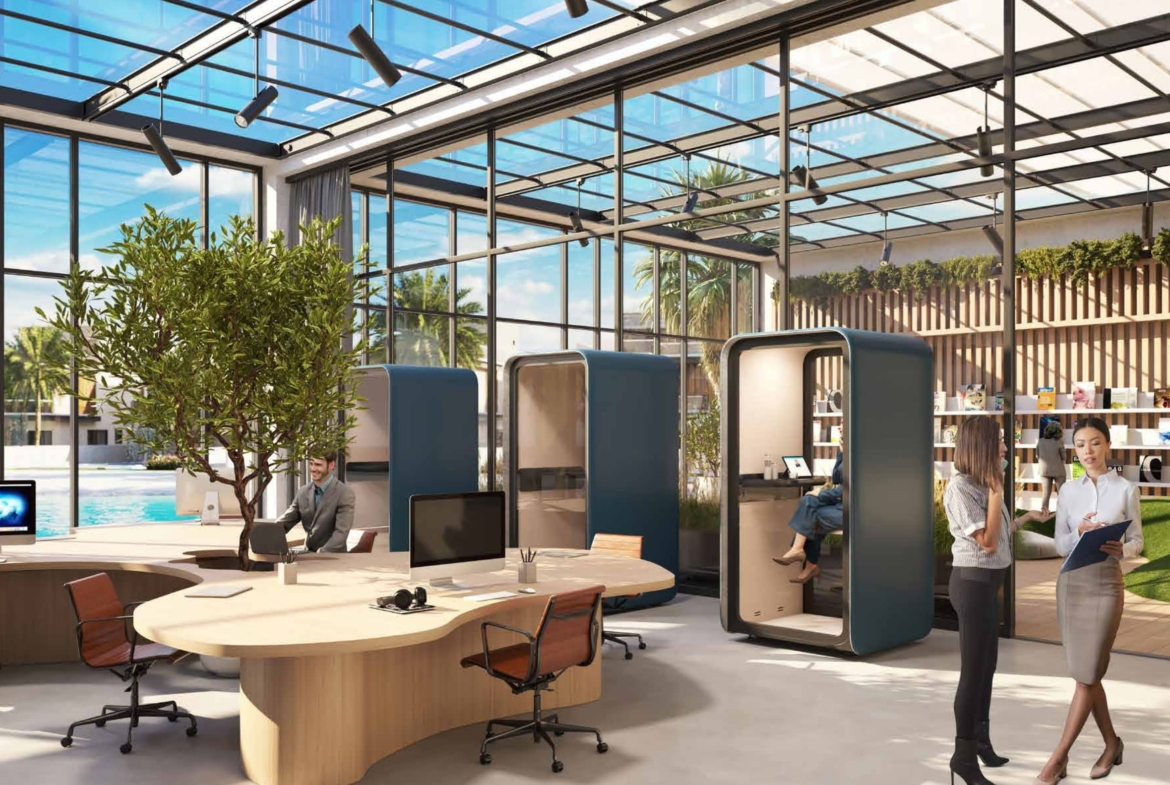 • Soundproof PODs: Private, soundproof workspaces thoughtfully designed with transparent glass walls, green elements, and state-of-the-art tech.