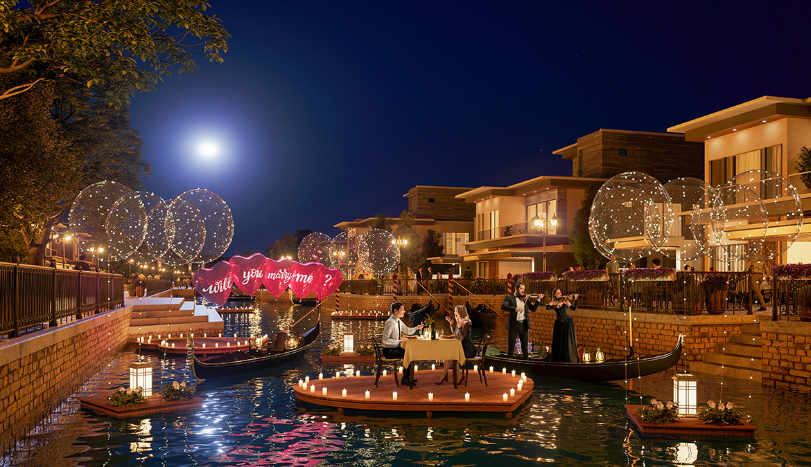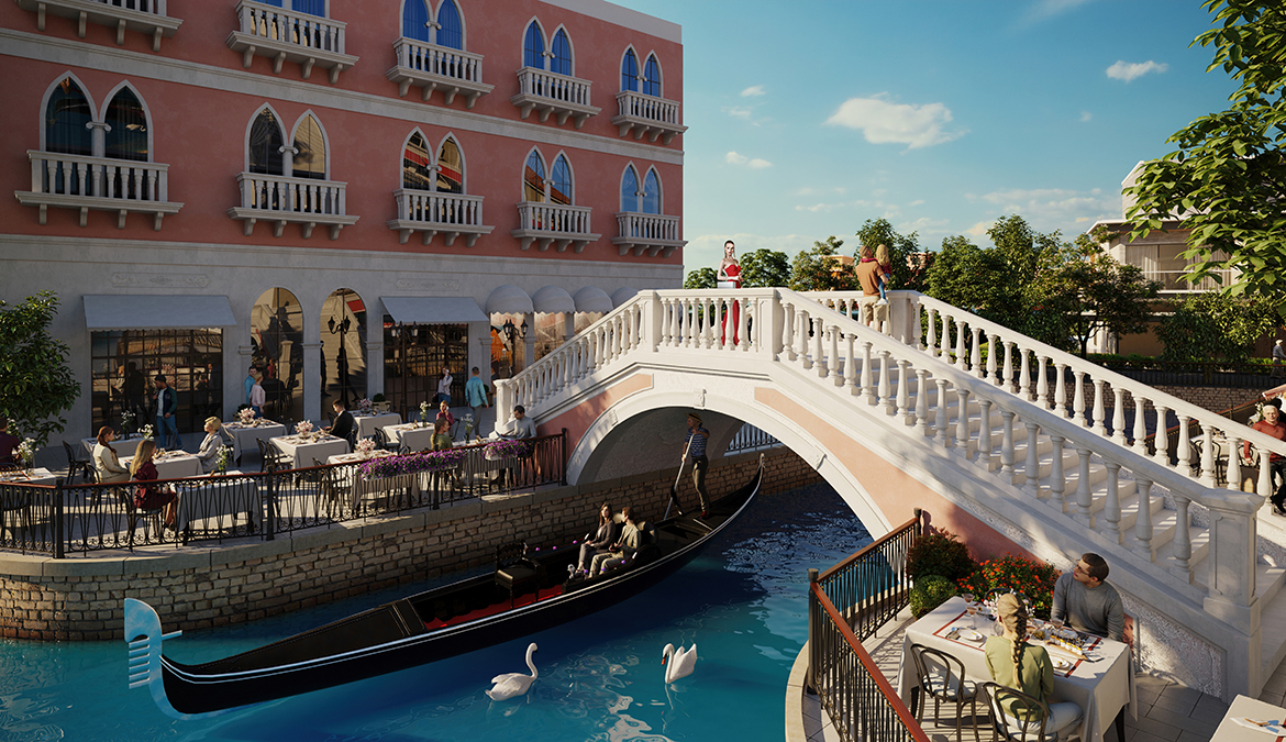 Effortlessly casting the spell of Venice, this cluster inspires you to live and to love. Arcing bridges pass over canals, as graceful gondolas ply the waters. Cozy waterside cafes provide perfect spots to take in the resplendent view. The ambiance is set for romance, where you can celebrate love for all eternity with musicians serenading you on a moonlit night.