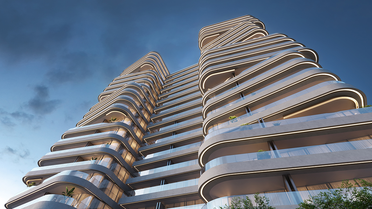 Every studio enjoys stunning vistas of Burj Khalifa, Downtown Dubai, and the Dubai Canal, enhanced by staggered curved balconies.