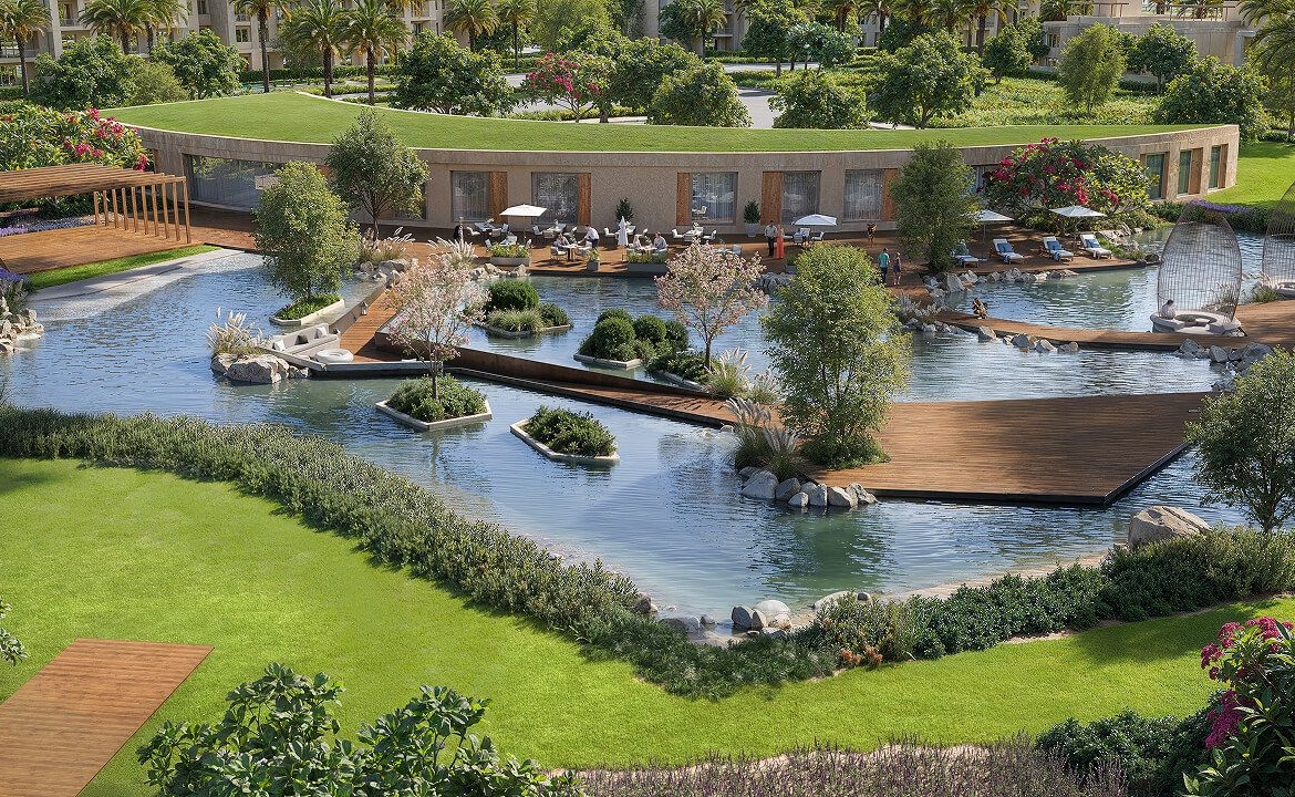 Developed with a strong focus on well-being, the project integrates natural elements into everyday life, featuring flowing waterways, green landscapes, and open spaces designed to create a calm and refreshing living environment.