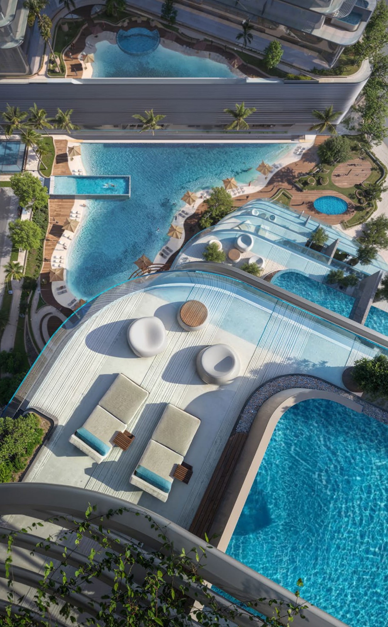 Elevated Living: Residences feature expansive layouts and dramatic floor-to-ceiling windows, ensuring that both natural light and captivating views are central to the daily experience. Meticulous attention to detail ensures a living experience that is both supremely luxurious and warmly inviting.