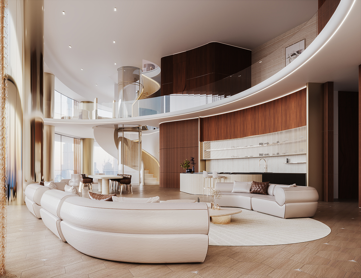 The tower is designed for holistic and eudemonic lifestyles, with interior details that breathe the spirit of wholeness and serenity, echoing tones that are both elegant and harmonious.