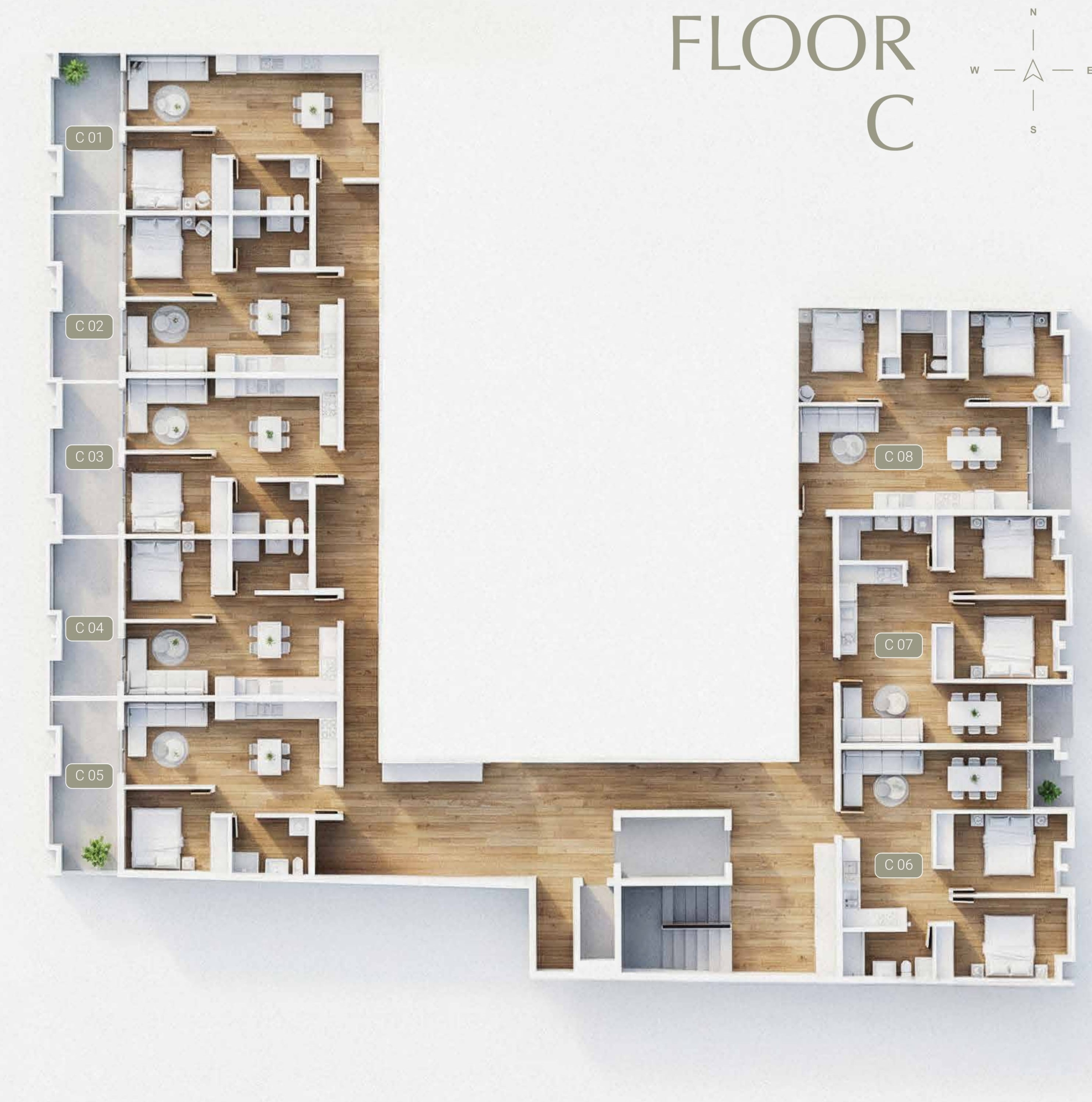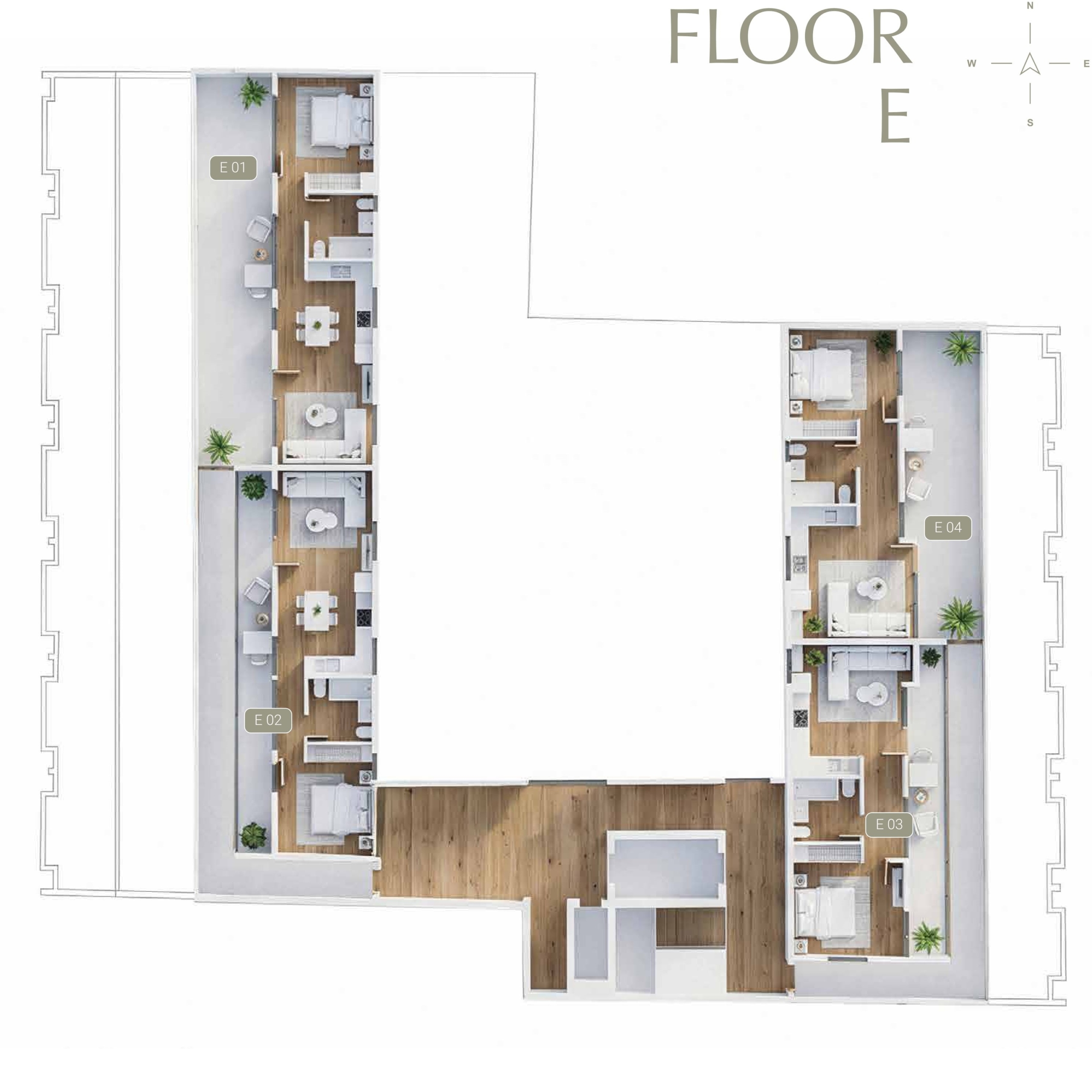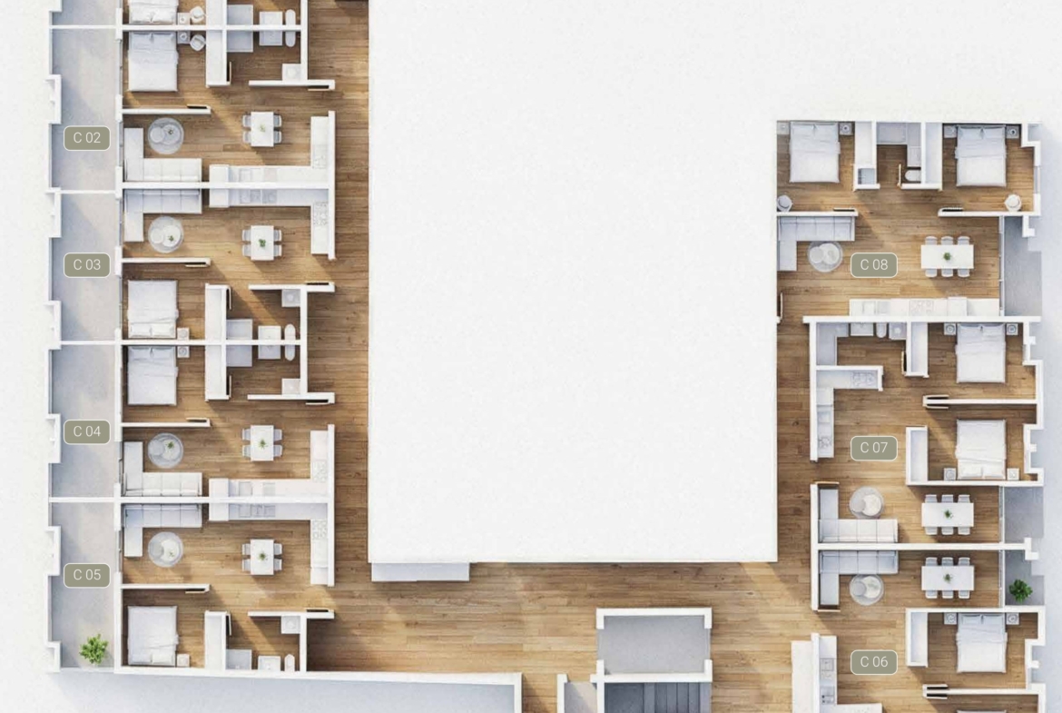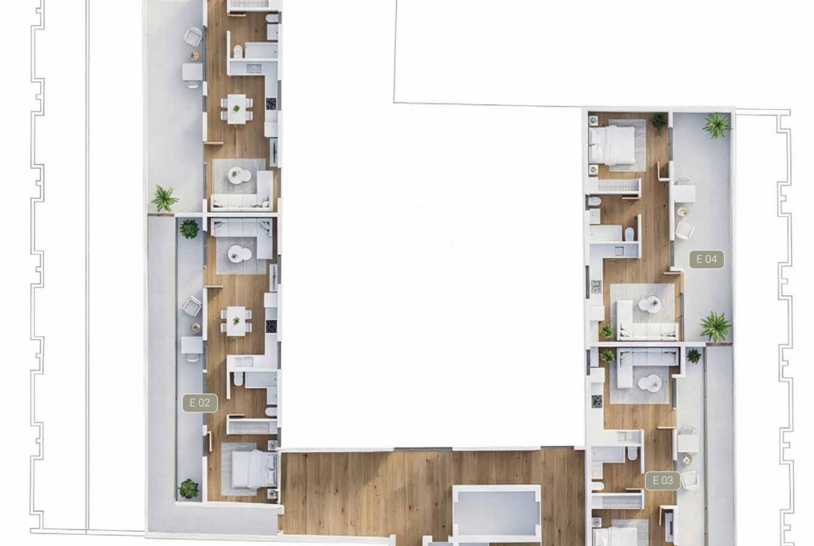 - Private Garden Views: Ground-floor apartments offer serene views of a private internal garden, providing a peaceful escape within the city.