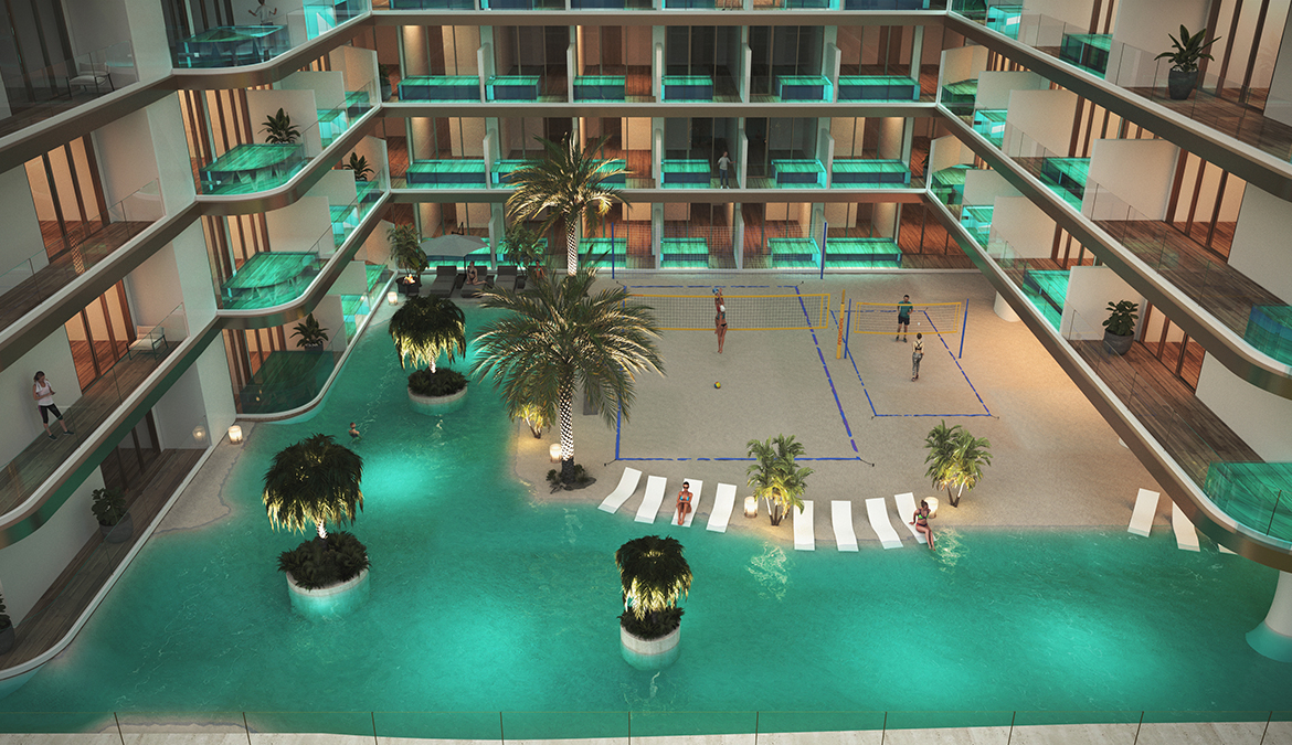 Dubai’s First Lagoon Apartment Complex Where luxury meets nature in Dubai’s first lagoon apartment complex, dive into serenity with a crystal blue lagoon, sun beds, and a waterfall. Enjoy family fun with a kids’ play area and volleyball court, or find inner peace at the yoga and meditation spots. A semi-open gym elevates your fitness