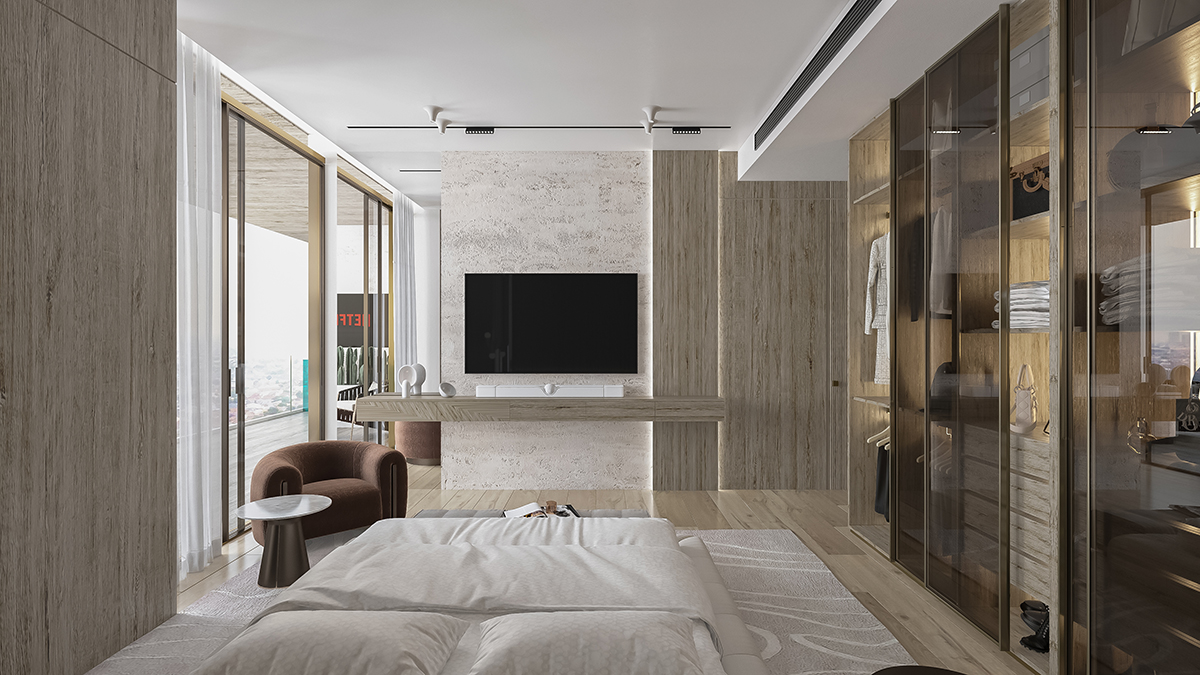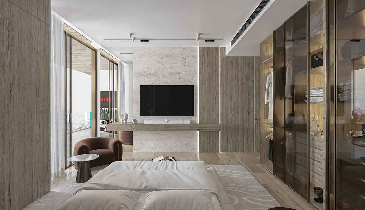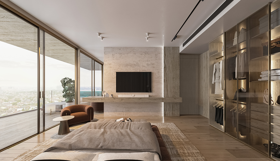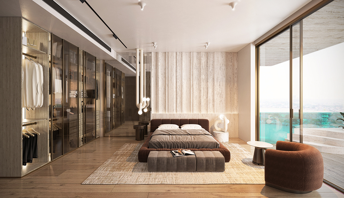 Step into unparalleled luxury with our main bedroom, adorned with premium Italian ceramics. Every detail has been meticulously curated to provide an ambience of sophistication and comfort, ensuring a serene and restful environment. The master bedroom opens to a private balcony featuring an exclusive swimming pool, enhancing your living experience. Bask in the epitome of opulence as you enjoy a seamless blend of indoor and outdoor living, all within your private sanctuary