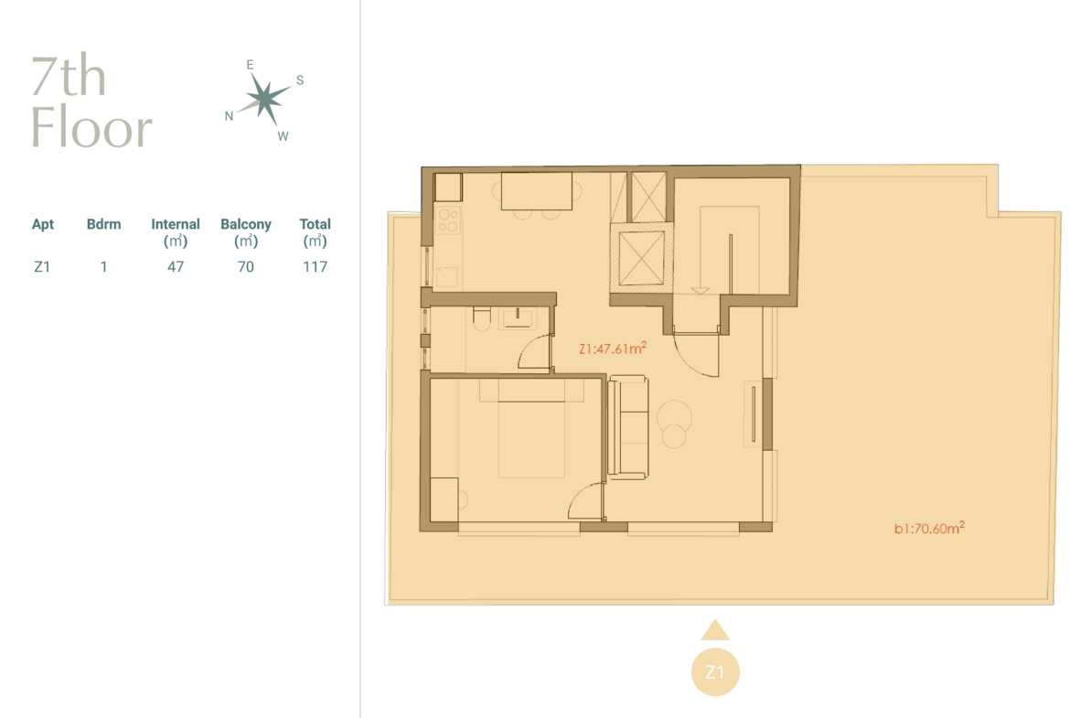 - Internal Area: 47 m²