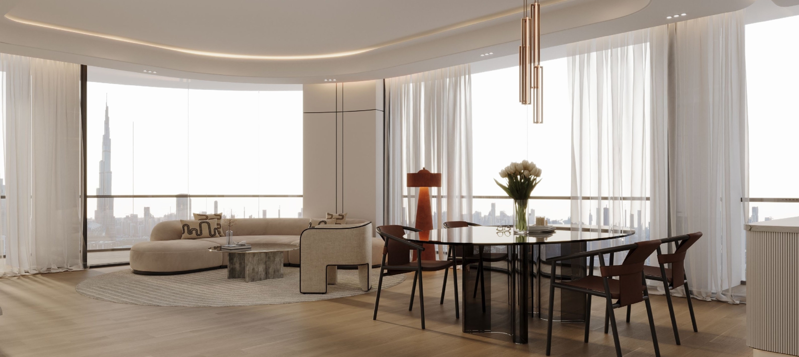 • Expansive windows framing astonishing views of the Dubai skyline.