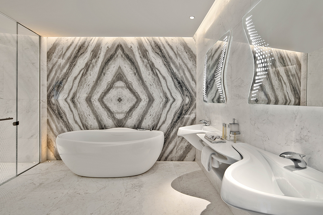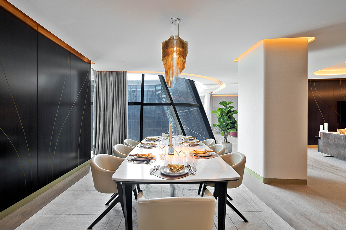 The Opus by OMNIYAT is not just a building; it is a unique masterpiece entirely envisioned and designed—from the powerful exterior to the unique interiors—by the late architectural legend, Dame Zaha Hadid.