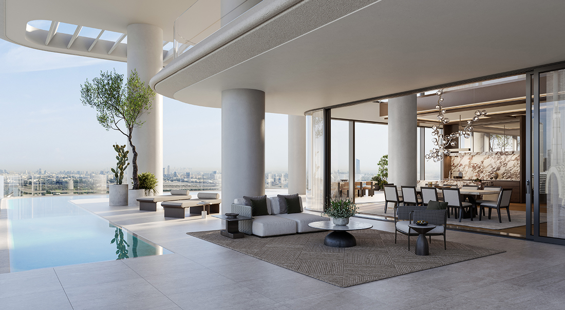 •           Private Pools in Every Home: Each exceptional residence features double-height living spaces that flow onto an expansive private terrace with its own pool—a rare, dedicated retreat suspended over Marasi Bay.